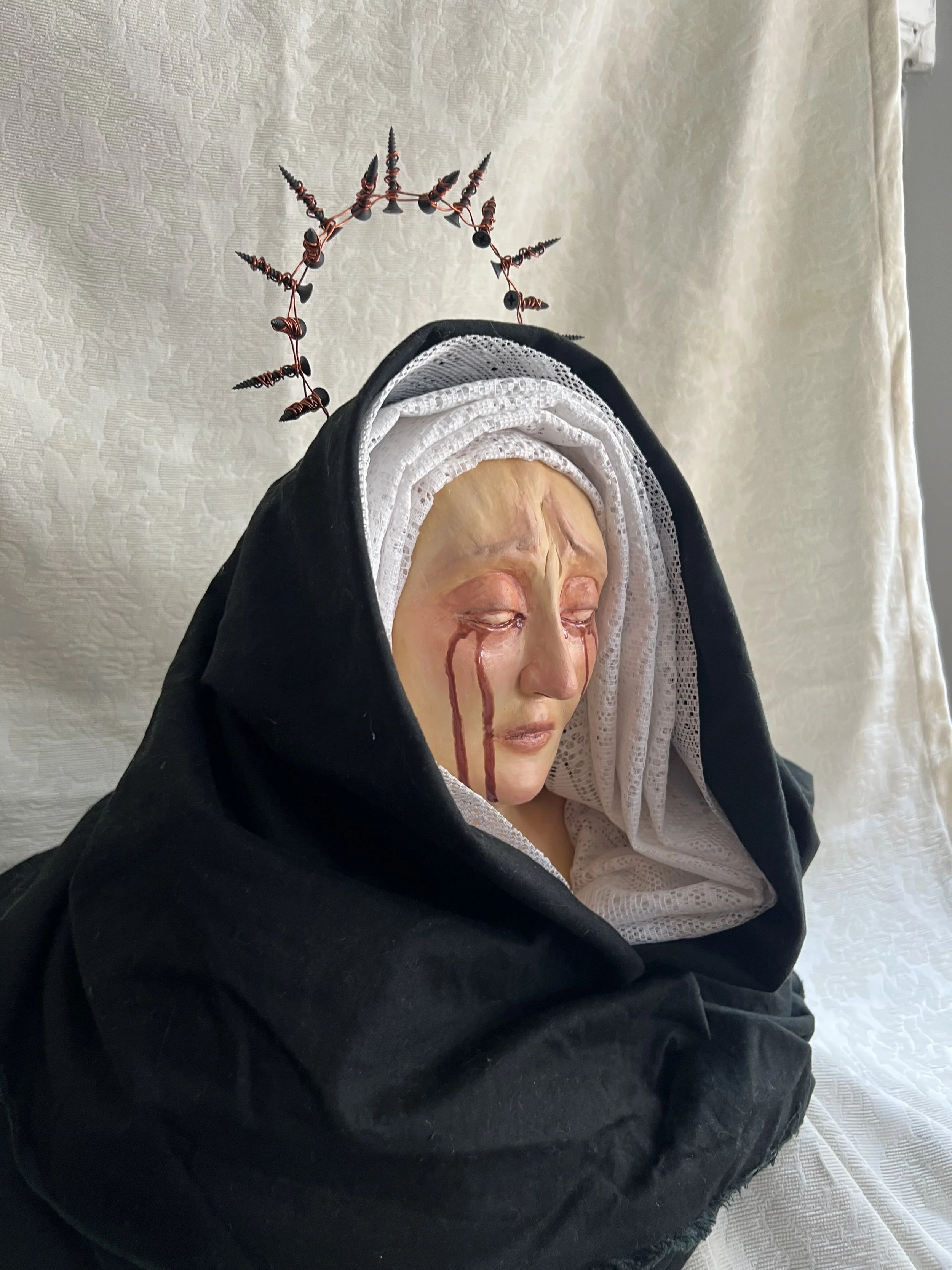 In October 2023, myself and others saw the beginning of a plan to massacre thousands of Gazan lives. Although it was difficult to see, it was worse for those who were living it. I absorbed so much pain, violence, greif, and anger from the reels of dead children on Instagram. What struck me most of all was the grief shown on the mothers who held their loved ones. This piece was a conjunction of observing the horror online. It will serve as a reminder to those who were complicite and refused to see it.